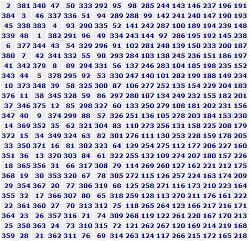 Franklin square properties are also preserved by complementing the square. However, this will sometimes not double the number because some Franklin squares are associative and some are side-to-side symmetric, and squares of these types are self-complementary.